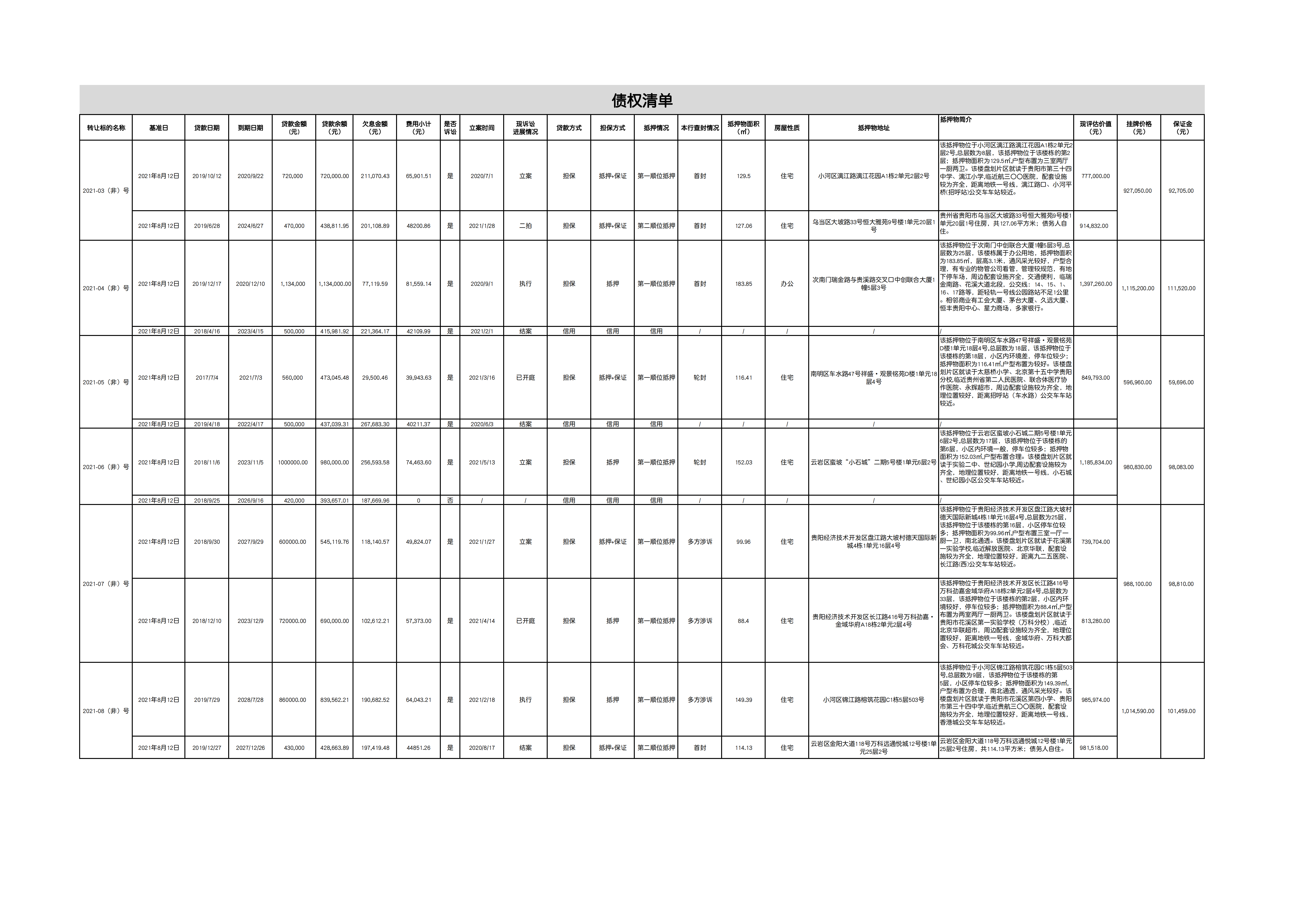 | 債權(quán)信息 | 債務(wù)人名稱 | 各筆債權(quán)簡況詳見附件“債權(quán)清單” | ||||||